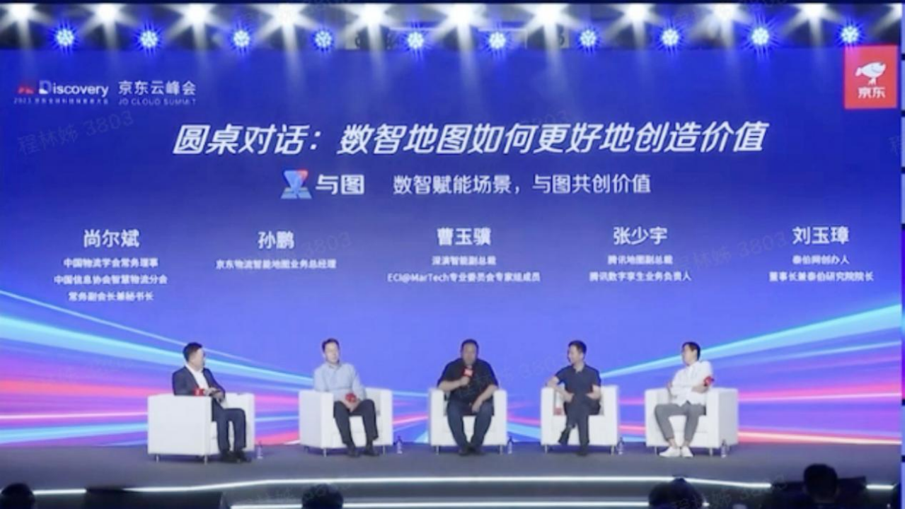 “数智化时代地图应用如何更好地赋能场景创造价值”的圆桌论坛,中间为pp电子智能副总裁曹玉骥